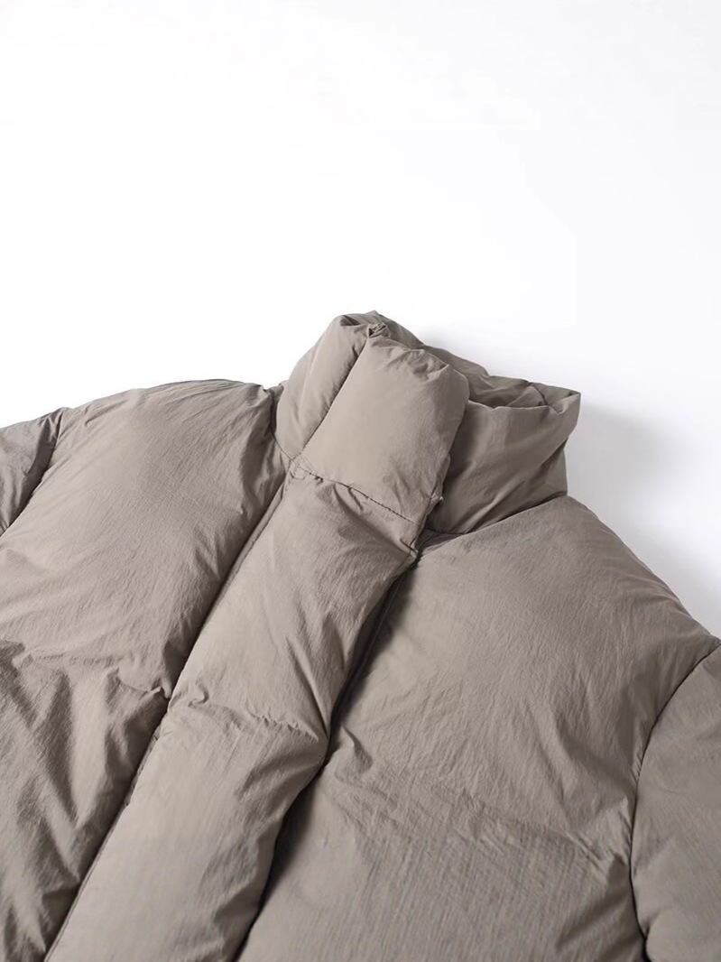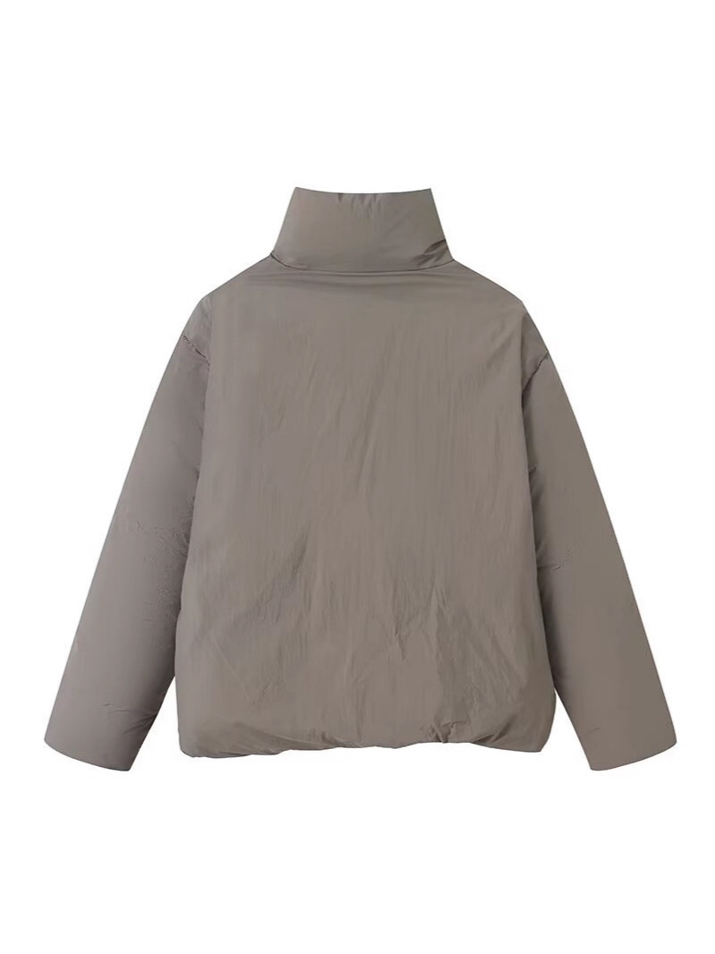 This women’s cropped puffer jacket features a clean stand collar design that delivers a minimalist and modern aesthetic. The short-length silhouette enhances body proportions while keeping the overall look sleek and balanced.