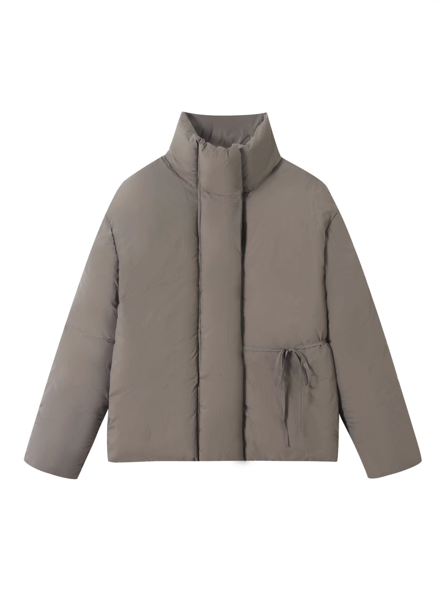 Filled with lightweight yet warm padding, this jacket provides excellent insulation without feeling bulky. The stand collar helps block cold wind, while the adjustable waist drawstring allows you to customize the fit—wear it loose for a relaxed look or cinched for a more defined silhouette.