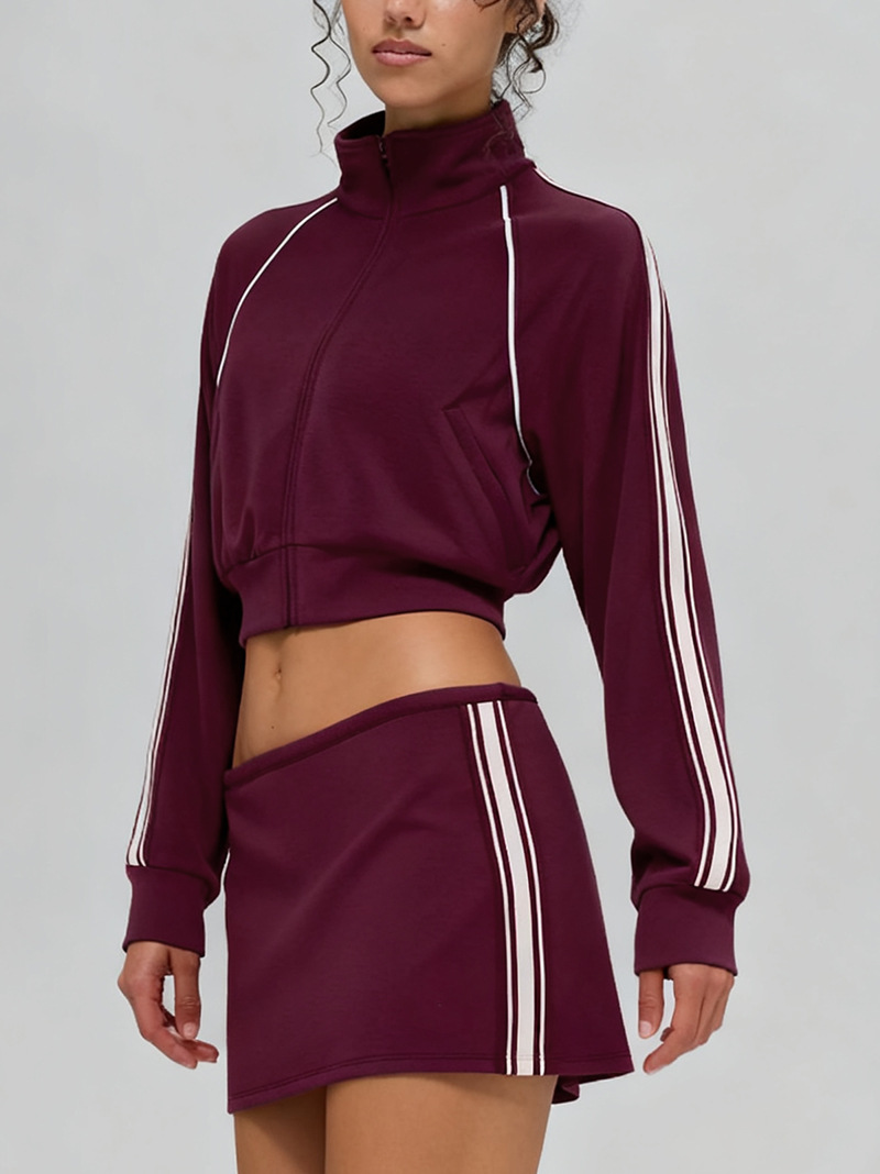 Women’s Golf Set | Cropped Zip-Up Jacket & Fitted Mini Skirt | Contrast Stripe Design