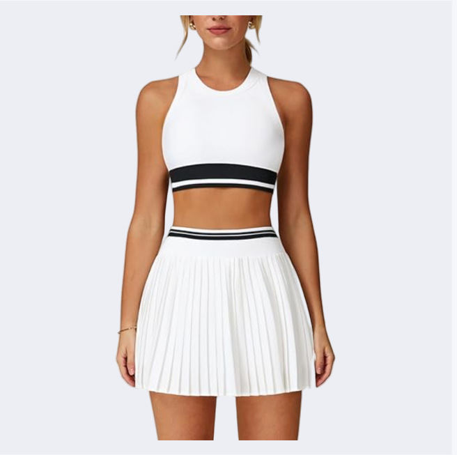 White Top + White Pleated Skirt (White) – clean, classic golf look