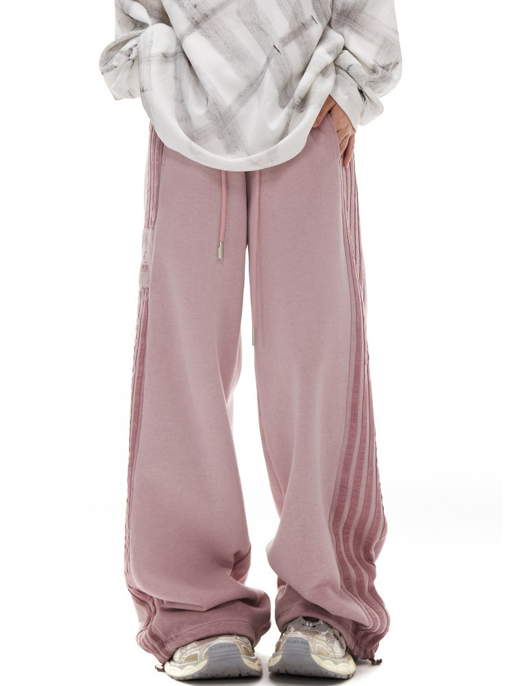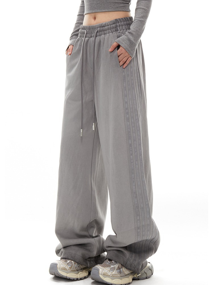 The relaxed straight wide-leg silhouette helps elongate the legs and offers excellent versatility for different body types. Side panel detailing adds subtle structure and visual depth, blending casual streetwear aesthetics with everyday practicality.